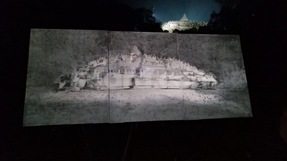 “Melukis Candi Sewu di malam hari benar-benar membuatku menyadari hal yang berbeda. Dengan bantuan proyektor yang menghasilkan pencahayaan yang begitu dramatis. Saya bisa melihat volume candi yang tidak kulihat di siang hari. Ini sungguh pengalaman yang luar biasa,” imbuh dia.